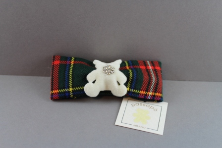 Molletta con fiocco in tessuto scozzese con orsetto in velluto con strass MLW-186/scoz